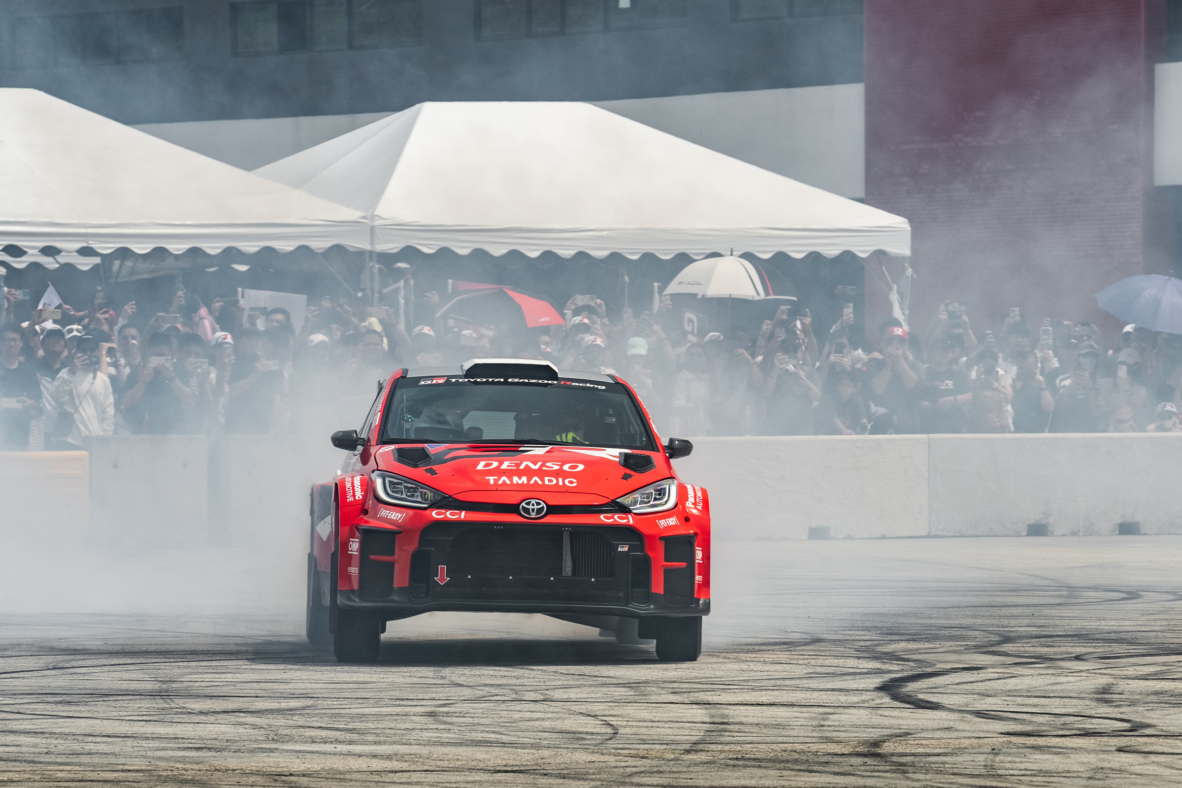 豐田章男會長Morizo 駕駛 GR Yaris Rally2 火力全開動態表演,圍觀人潮大聲應援,將現場氣氛推向最高點。