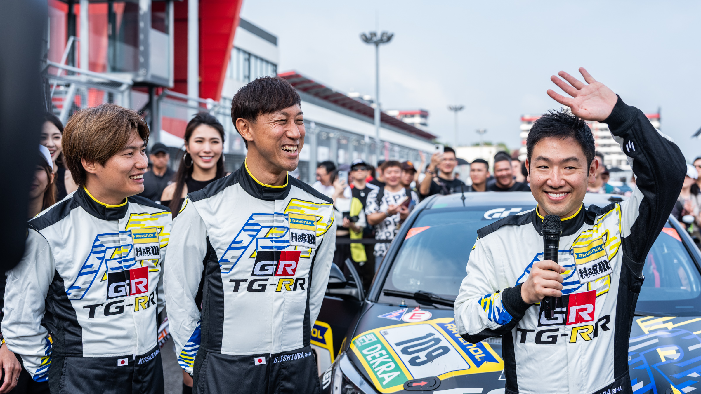 豐田章男會長神采奕奕下車,先用台語向全場觀眾打招呼「大家好!」,再用中文說:「我愛你們!」,並在現場向花蓮災區表達關懷,表示「希望帶給大家笑容,一起努力恢復我們的家園」,也感謝台灣車迷「有更多人到場、帶來更多的笑容」;黃南光董事長則於體驗後盛讚:「MORIZO技術高超,坐在裡面根本不會害怕,這是一生難得的機會。」這不僅是頂尖車隊速度與技術的展演,更象徵台日夥伴情誼與連結,將現場氣氛推向最高潮。