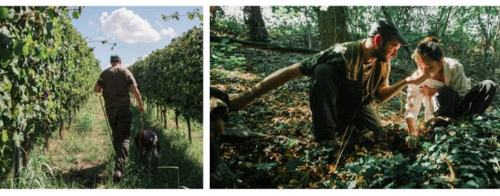 附近的山林裡與獵人與獵犬一同探尋美味松露。