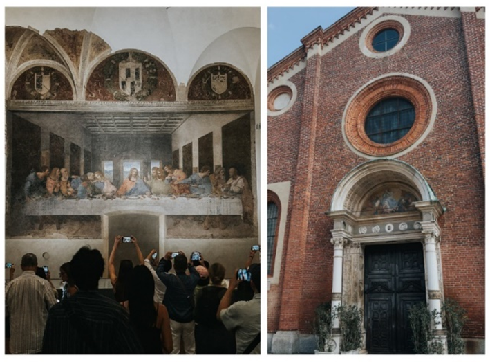 達文西《最後的晚餐》畫作真跡,現存於義大利米蘭的聖瑪麗亞感恩教堂內的修道院餐廳牆上。